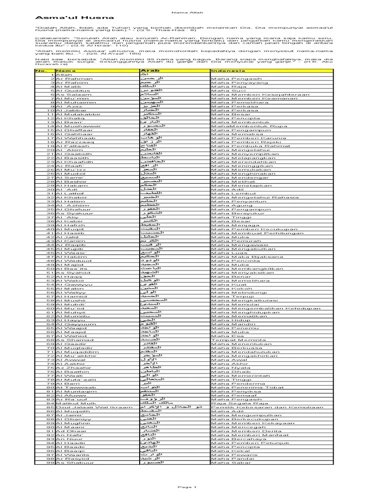 Asmaul Husna 1 Lembar - Asmaul Husna Beserta Artinya Hd - Download asmaul husna pdf 1 lembar contoh makalah hafalan kitab .
